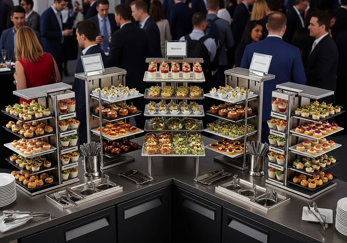 Compact Serving Stations: If a buffet is necessary, use vertical displays and tiered stands to maximize space. Keep the station organized and easy to navigate.